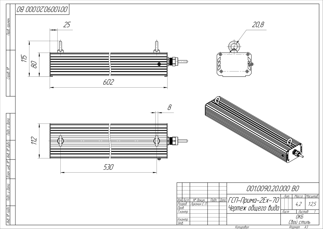 | Габаритные размеры (ДxШxВ), мм | 602х112х80 |