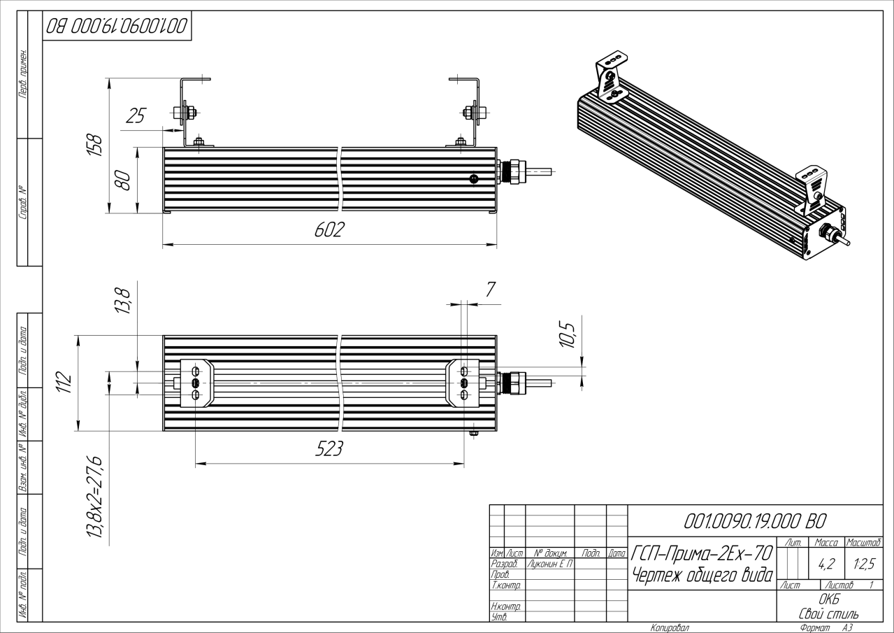 | Габаритные размеры (ДxШxВ), мм | 602х112х80 |