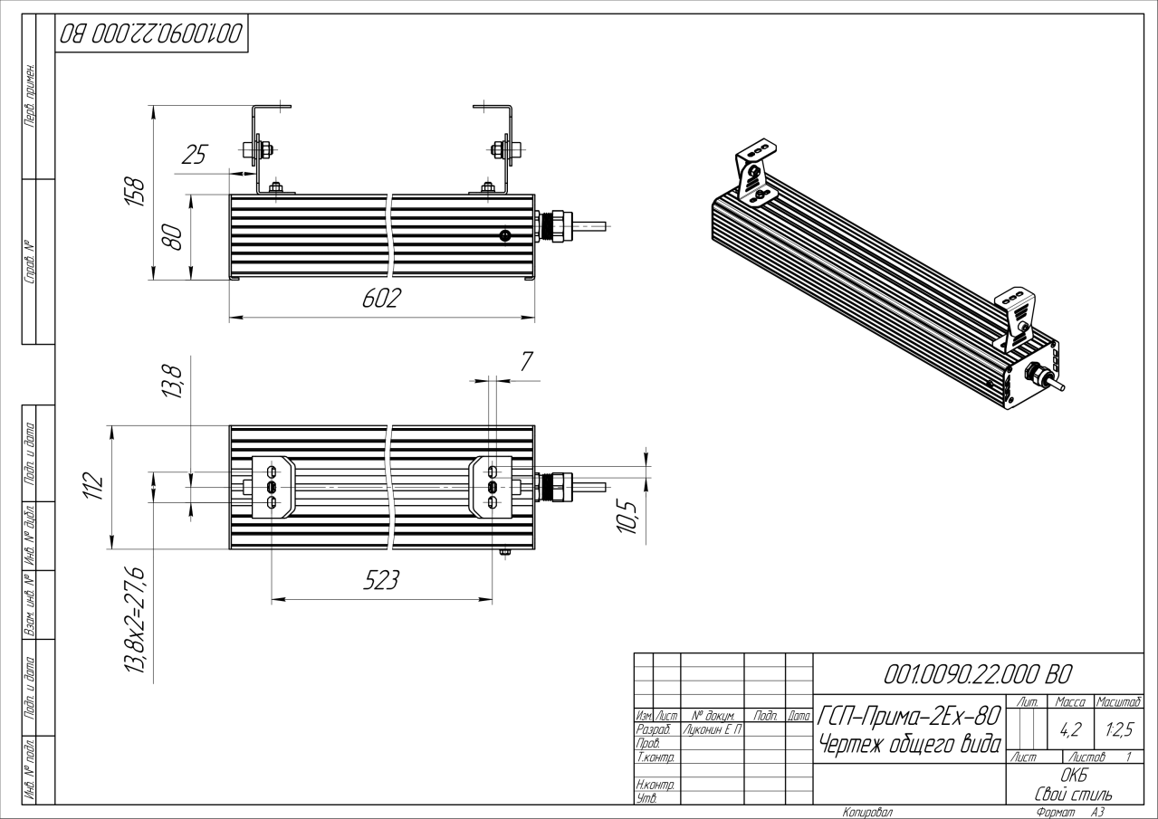 | Габаритные размеры (ДxШxВ), мм | 602х112х80 |