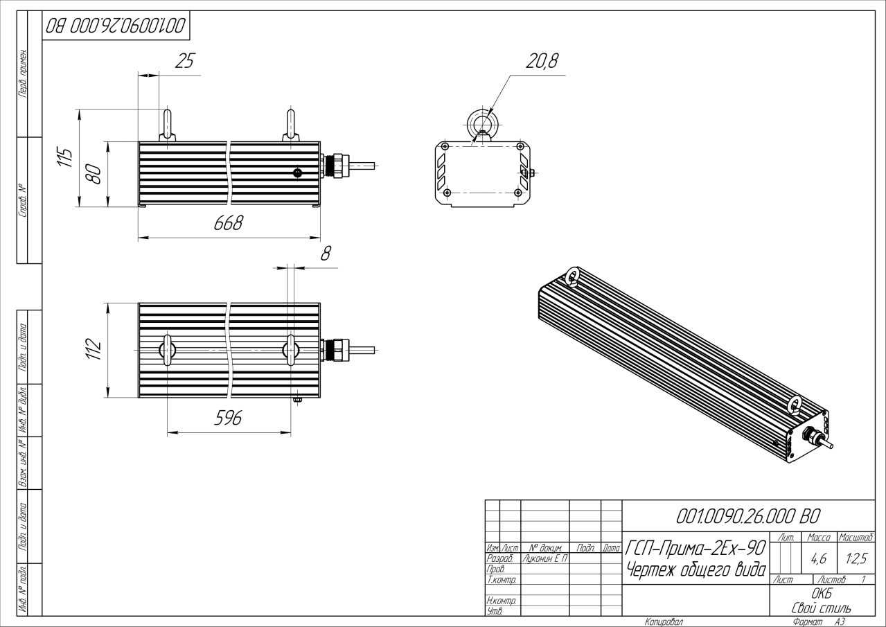 | Габаритные размеры (ДxШxВ), мм | 668x112x80 |