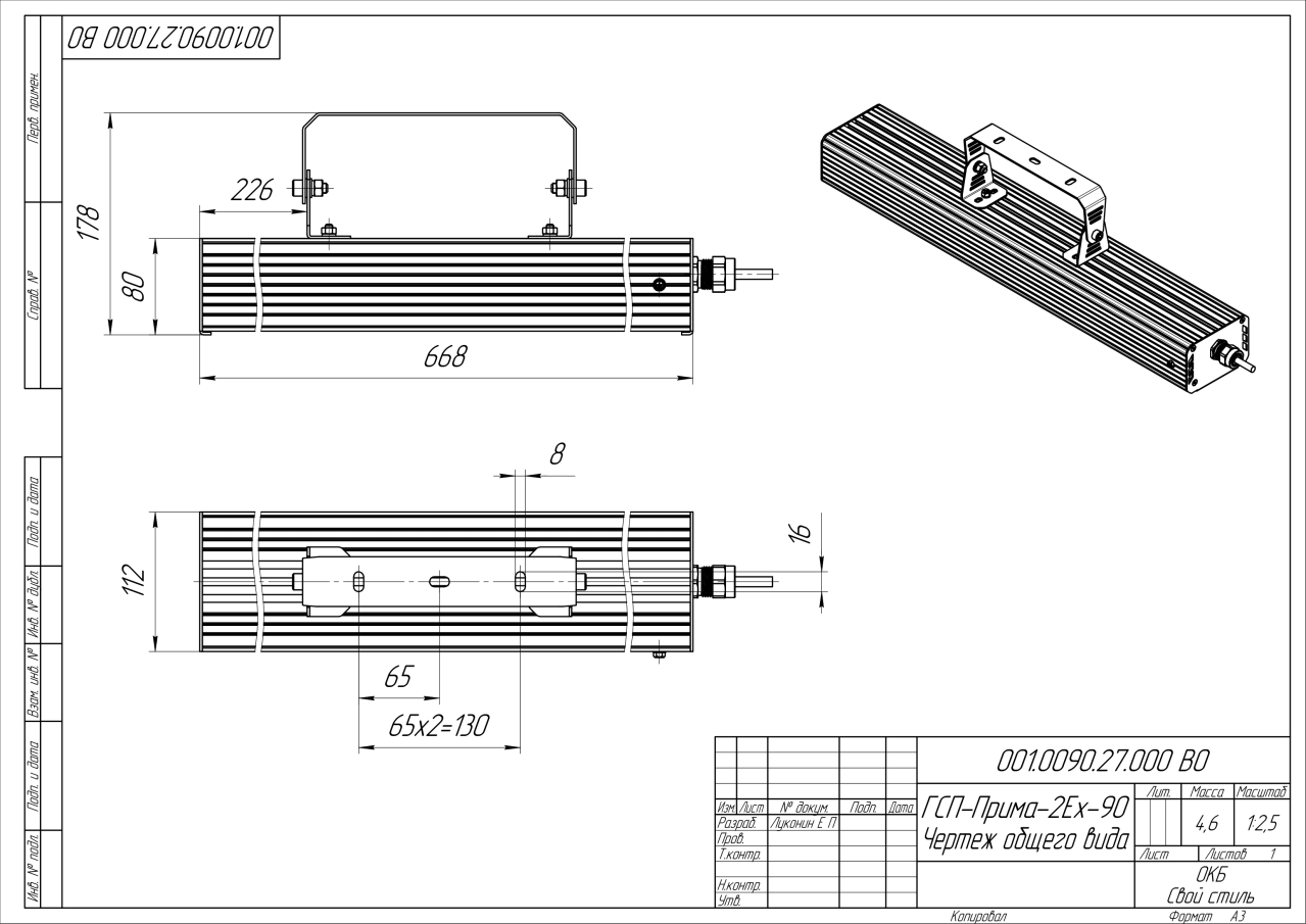 | Габаритные размеры (ДxШxВ), мм | 668x112x80 |