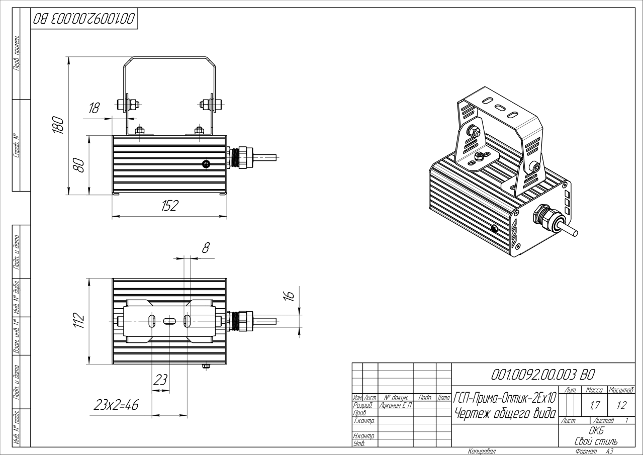 | Варианты окрашивания корпуса | Любой цвет по шкале RAL |