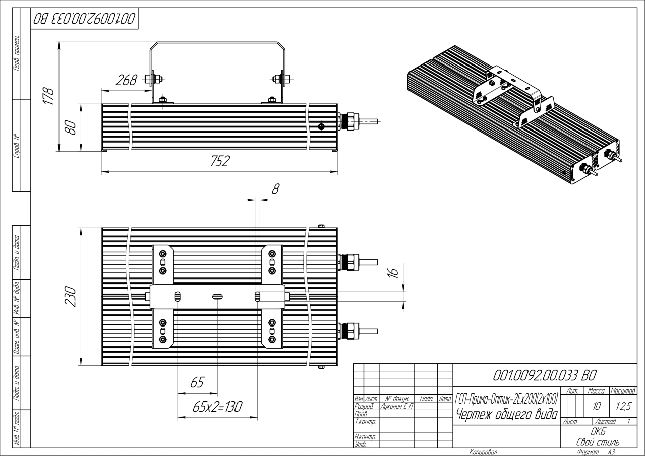 | Габаритные размеры (ДxШxВ), мм | 752x230x80 |