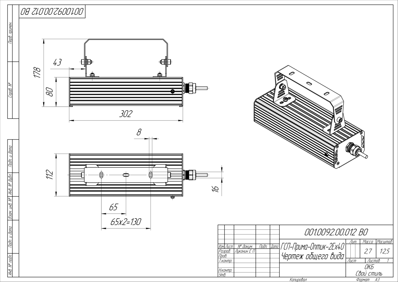 | Габаритные размеры (ДxШxВ), мм | 302x112x80 |