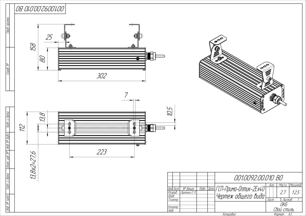 | Габаритные размеры (ДxШxВ), мм | 302x112x80 |