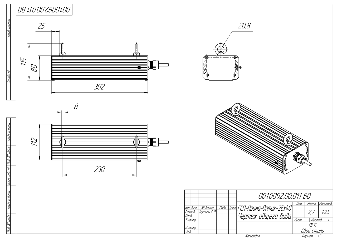 | Габаритные размеры (ДxШxВ), мм | 302x112x80 |