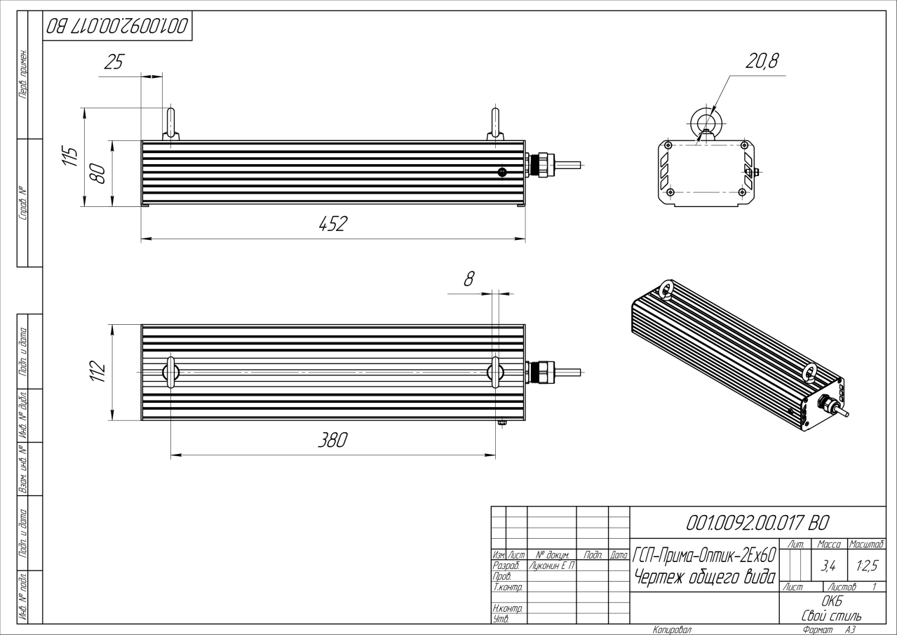 | Габаритные размеры (ДxШxВ), мм | 452x112x80 |