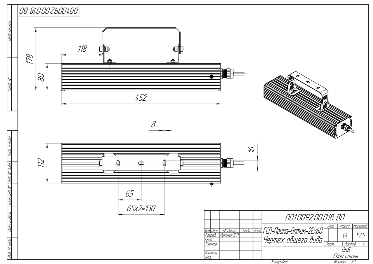 | Габаритные размеры (ДxШxВ), мм | 452x112x80 |