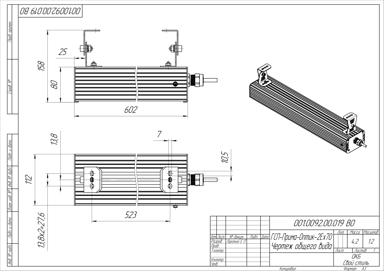 | Габаритные размеры (ДxШxВ), мм | 602х112х80 |