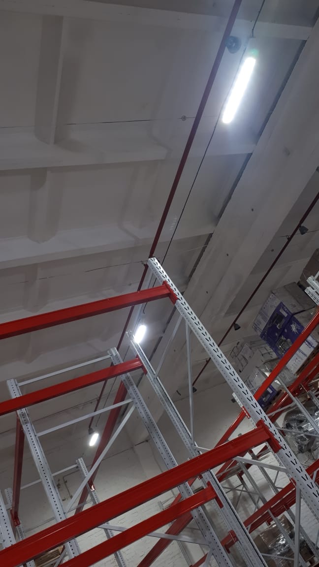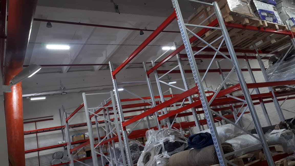 Перед нами стояла задача разработать светотехнический проект и обеспечить поставку светильников для стеллажного склада Котласского химического завода. Ключевым требованием было обеспечить качественное освещение склада с учетом специфики хранения товаров на стеллажах, обеспечив равномерное распределение света и исключив слепящий эффект для сотрудников.
