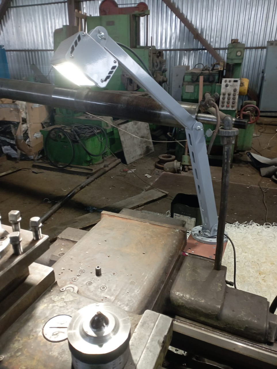 ООО «КМВ «ФРЕГАТ» столкнулось с проблемой недостаточного и неэффективного освещения на рабочих местах. Существующая система освещения не обеспечивала должного уровня освещенности, что приводило к снижению производительности труда и увеличению количества брака. Необходимо было разработать и внедрить современное, надежное и удобное в использовании решение для освещения станков, учитывающее специфику судостроительного производства — вибрации, наличие пыли и механические повреждения. Задача заключалась в разработке и поставке стационарного, легко регулируемого, вибростойкого светильника, обеспечивающего оптимальный уровень освещенности рабочей зоны станка.